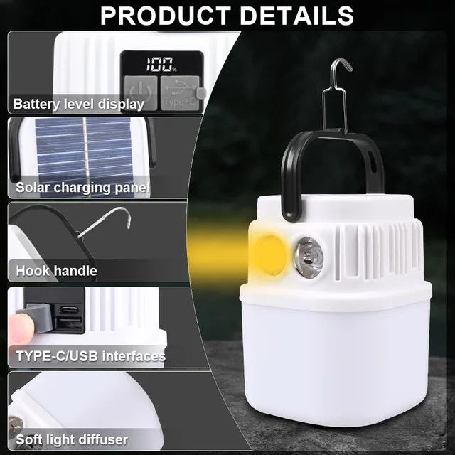 چراغ شارژی خورشیدی چندکاره | لامپ کمپینگ و اضطراری USB و سولار