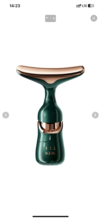 ماساژور سه کاره KDK محصولی فوق العاده برای هر نوع پوستی است که میتواند باعث جوانسازی، تحریک کلاژن سازی، افزایش گردش خون، درخشش و صافی پوست شود. این ماساژور حاوی سه سر مختلف برای گردن، صورت و چشم است. از دیگر ویژگی های این ماساژور 3 در یک میتوان به افزایش خاصیت ارتجاعی پوست، از بین بردن خستگی و سیاهی دور چشم، لیفتینگ و سفت شدن پوست اشاره کرد. این ماساژور و لیفت صورت قابل استفاده برای تمامی افراد با انواع پوست است و هیچگونه آسیبی به پوست وارد نمیکند. به هیچ وجه باعث قرمزی، خراش یا ایجاد حساسیت نمیشود. توجه داشته باشید اگر برروی سطح پوست تان دچار سوختگی، خراش یا زخم شده اید به هیچ وجه از محصول برروی آن نقاط استفاده نکنید. در صورت مشاهده قرمزی یا حساسیت پوست خود را با آب سرد شستشو دهید.