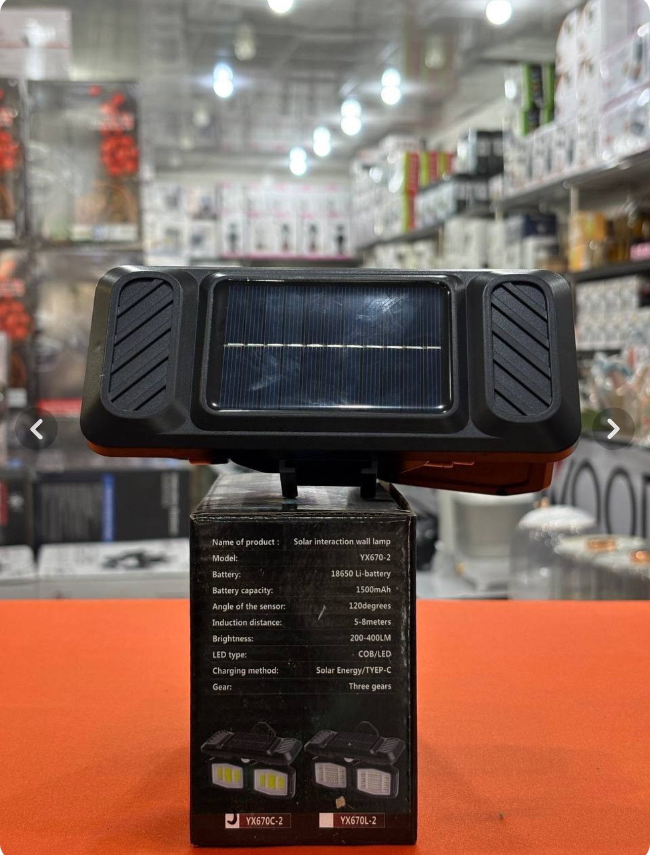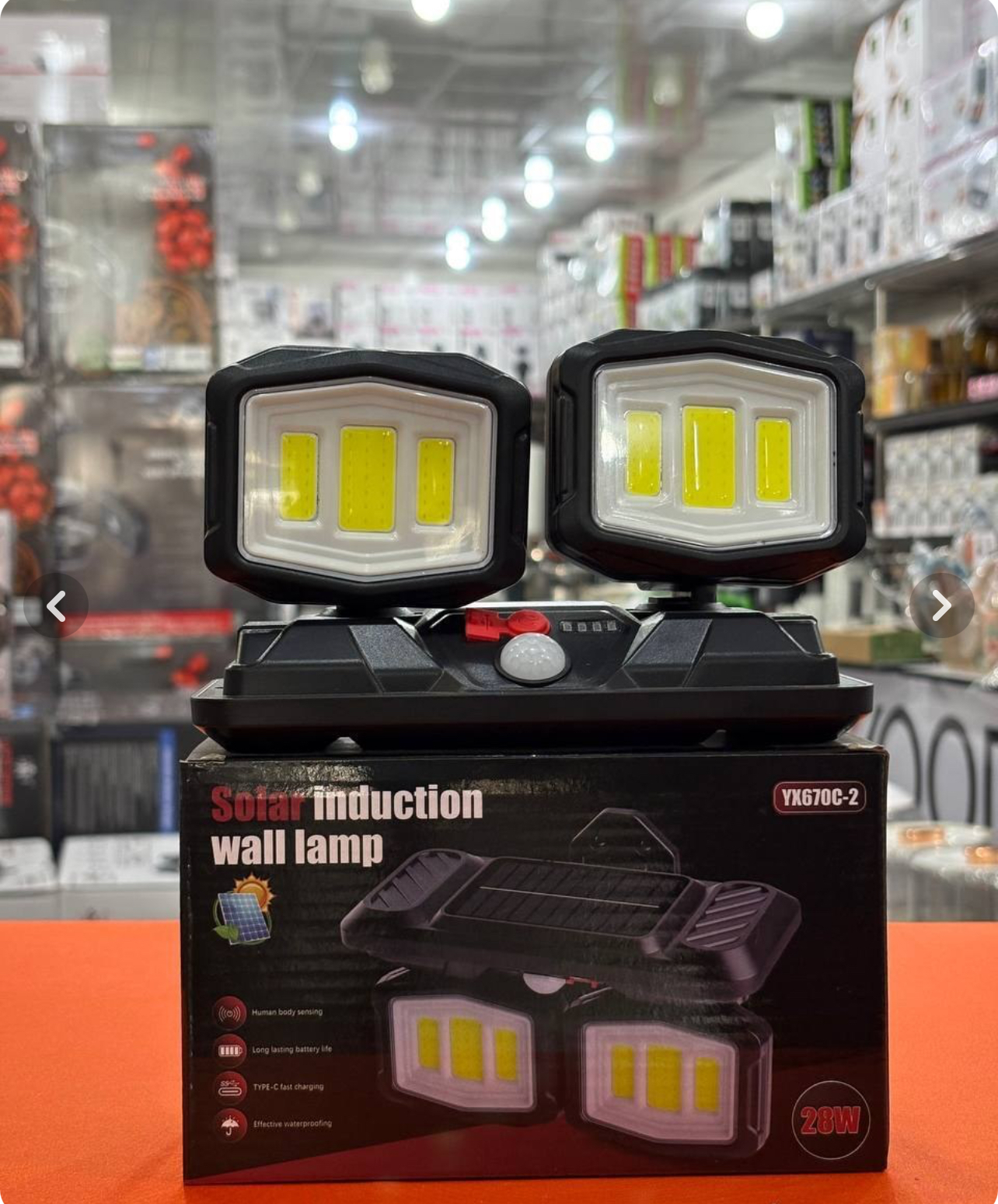 چراغ شارژی خورشیدی دیواری سنسور دار 28 وات ضد آب مدل YX670C-2