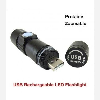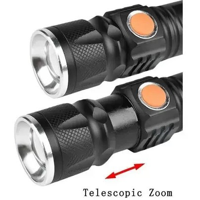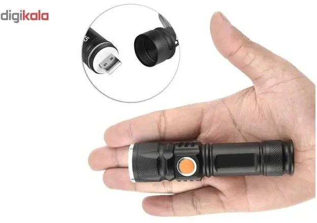 چراغ قوه پلیسی زوم دار خودکاری دارای چیپ قوی T6 با 3 حالت نوردهی و با چراغ بغل با باتری شارژی داخلی با پورت USB