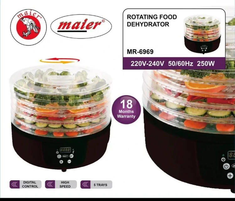 میوه خشک کن، وسیله ای برقی جهت خشک کردن انواع میوه و سبزیجات است. خشک کردن مواد غذایی یکی از روش های مرسوم برای نگهداری طولانی تر مواد خوراکی است که با پیشرفت تکنولوژی بوسیله ی دستگاه های میوه خشک کن انجام میشود. درادامه ی این مطلب شما را با مشخصات میوه خشک کن مایر مدل MR-6969 آشنا میکنیم.