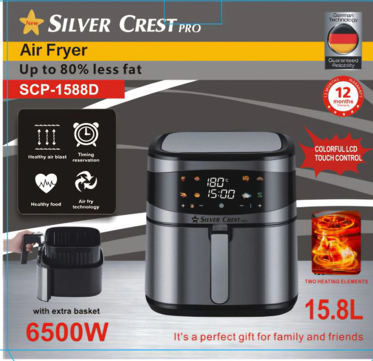 دیگه بر کسی پوشیده نیست که سرخ کنهای سیلور کرست پرفروش ترین و محبوب ترین سرخ کنهای بازار هستند که طرفداران پر و پا قرصی دارند سرخ کن سیلور کرست مدل 1588 با حجم دیگ 15/8 لیتر عرضه گردیده که حجم فوق العاده بالائی به حساب می آید عمل پخت در این دستگاه از طریق دو المنت بالا و پائین و با کمک گردش هوای گرم انجام میشود تمام امکانات یک سرخ کن از جمله برنامه تنظیم دما و تایم را سیلور کرست 1588دارد تعداد برنامه پیش فرض 8 برنامه است و تا 200 درجه سانتی گراد قابل گرم شدن بوده و قابلمه دارای سبد جدا شونده است انشالله که مشتریان عزیز باسلام به خصوص غرفه ماهور شیراز از خرید آن راضی باشند