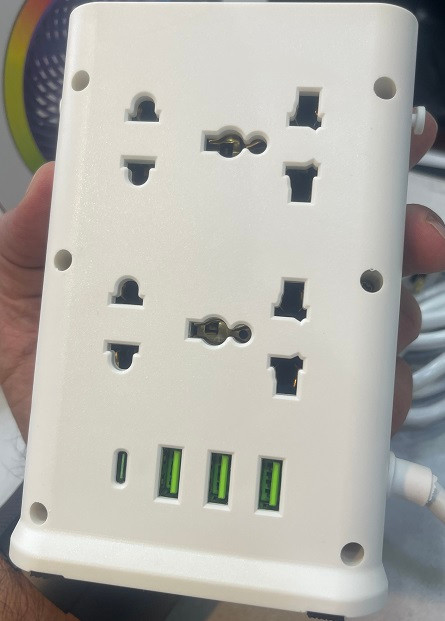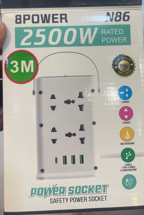 چندراهی برق مدل N86 با 8 پریز یونیورسال + 4 پورت USB (USB-C و USB-A) | توان 2500 وات | مناسب برای خانه و محل کار